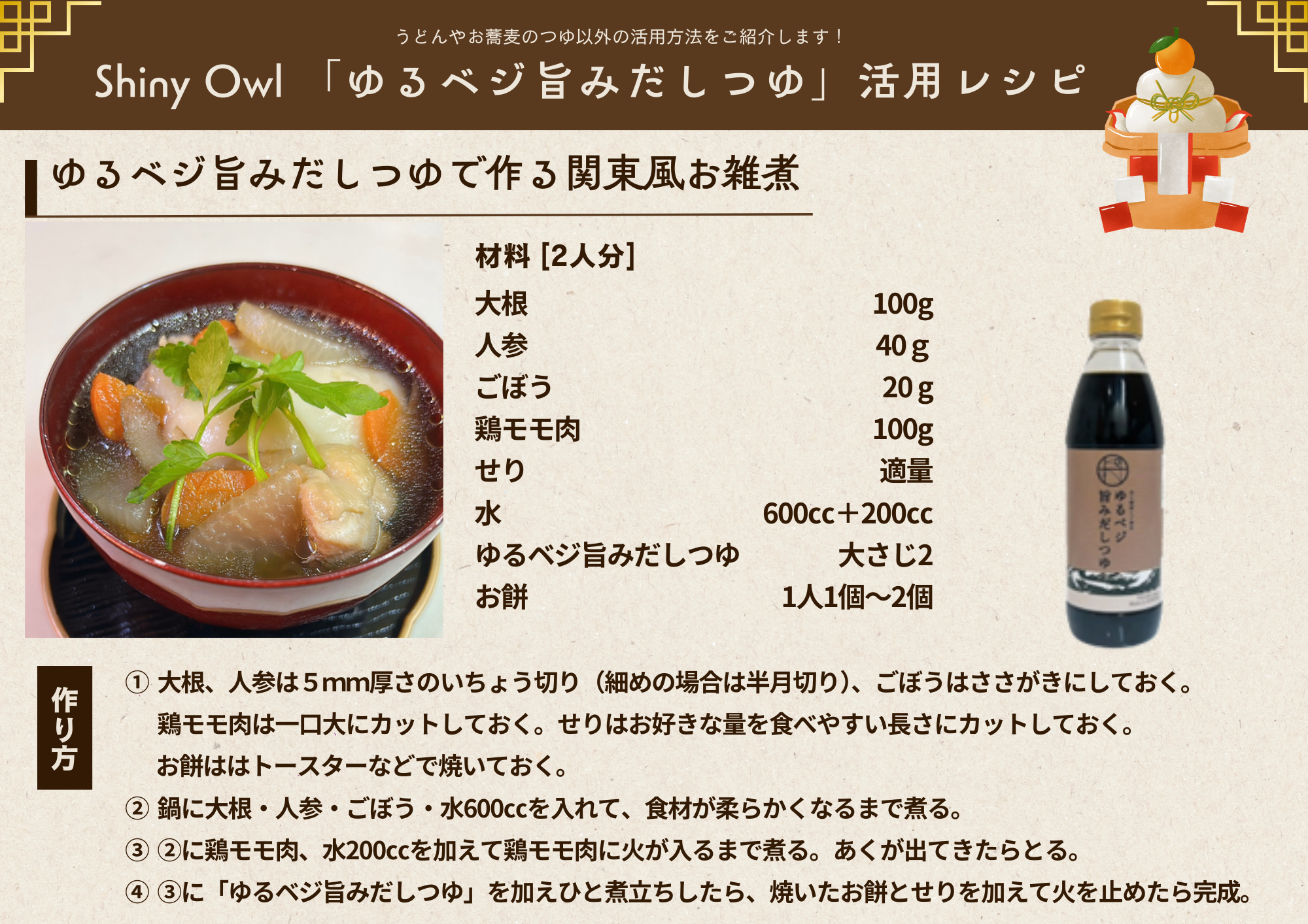 Shiny Owl オンラインショップ人気商品「ゆるべジ旨みだしつゆ」。