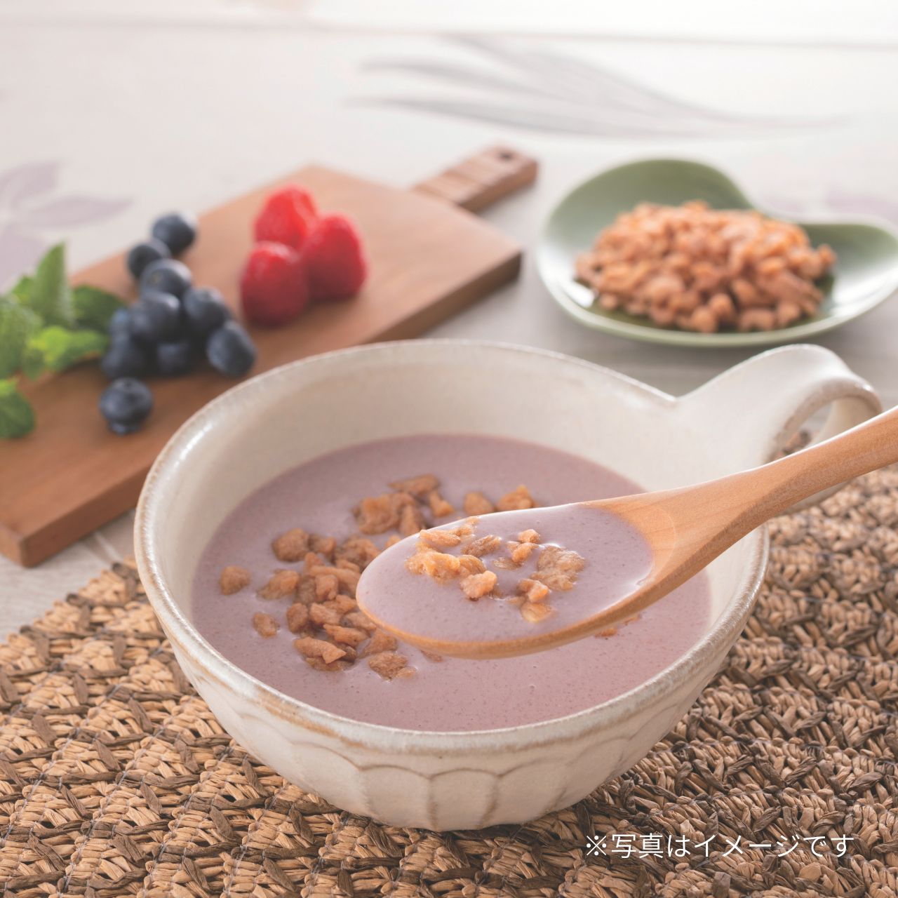 ブルーベリー果汁パウダーとストロベリーパウダーを加えてミックス味に仕上げました。また、隠し味に黒糖を加えてコクを出しています♪