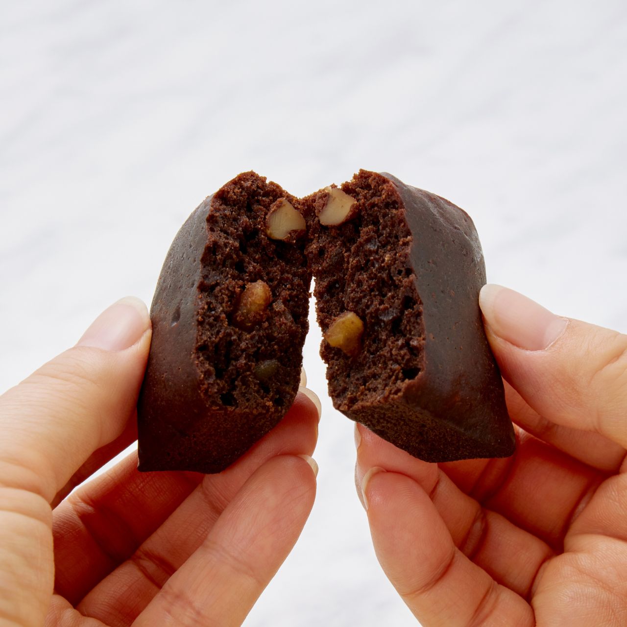 豆乳(国内製造)、アルロース(希少糖)、大豆粉、液卵、チョコレート(カカオマス、エリスリトール、ココアバター、全粉乳)、マーガリン、脱脂粉乳、くるみ、植物性たん白、ココアパウダー、食物繊維(イヌリン)、植物油脂、卵白粉末、卵黄粉末、食塩/加工デンプン、膨張剤、香料、甘味料(スクラロース)、酸化防止剤(ビタミンE)、(一部に卵・乳成分・小麦・大豆・くるみを含む)