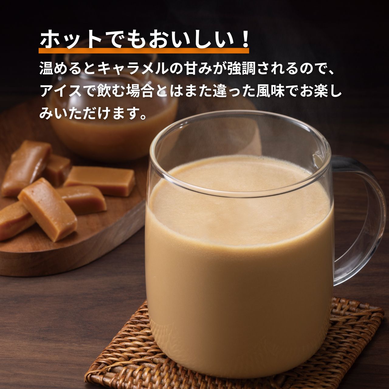 隠し味にコーヒーをブレンドし、甘さは残しつつしつこくなく飲みやすい味に仕上げています。