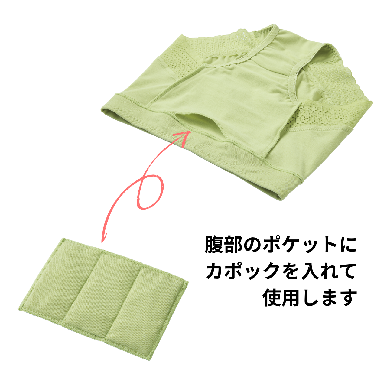 フェミール ウォームショーツはカポックを下腹部に使用し、優しい温もりであなたを包み込みます。