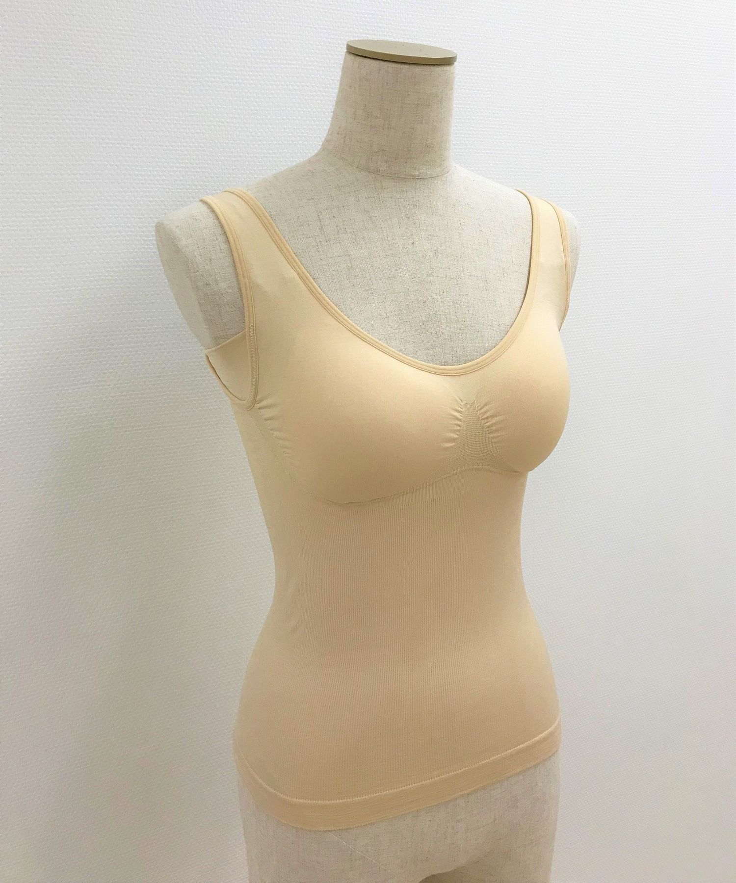 植物性由来成分で安心『沖縄産アロエベラ』糸を使用した肌に負担の少ない優しい素材。背中のVネックは、ほど良いあきが背中のラインを綺麗に見せてくれます。