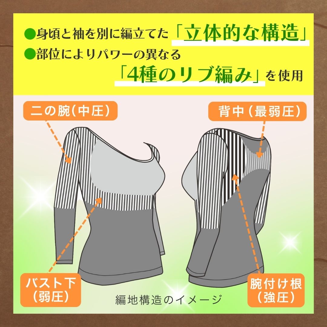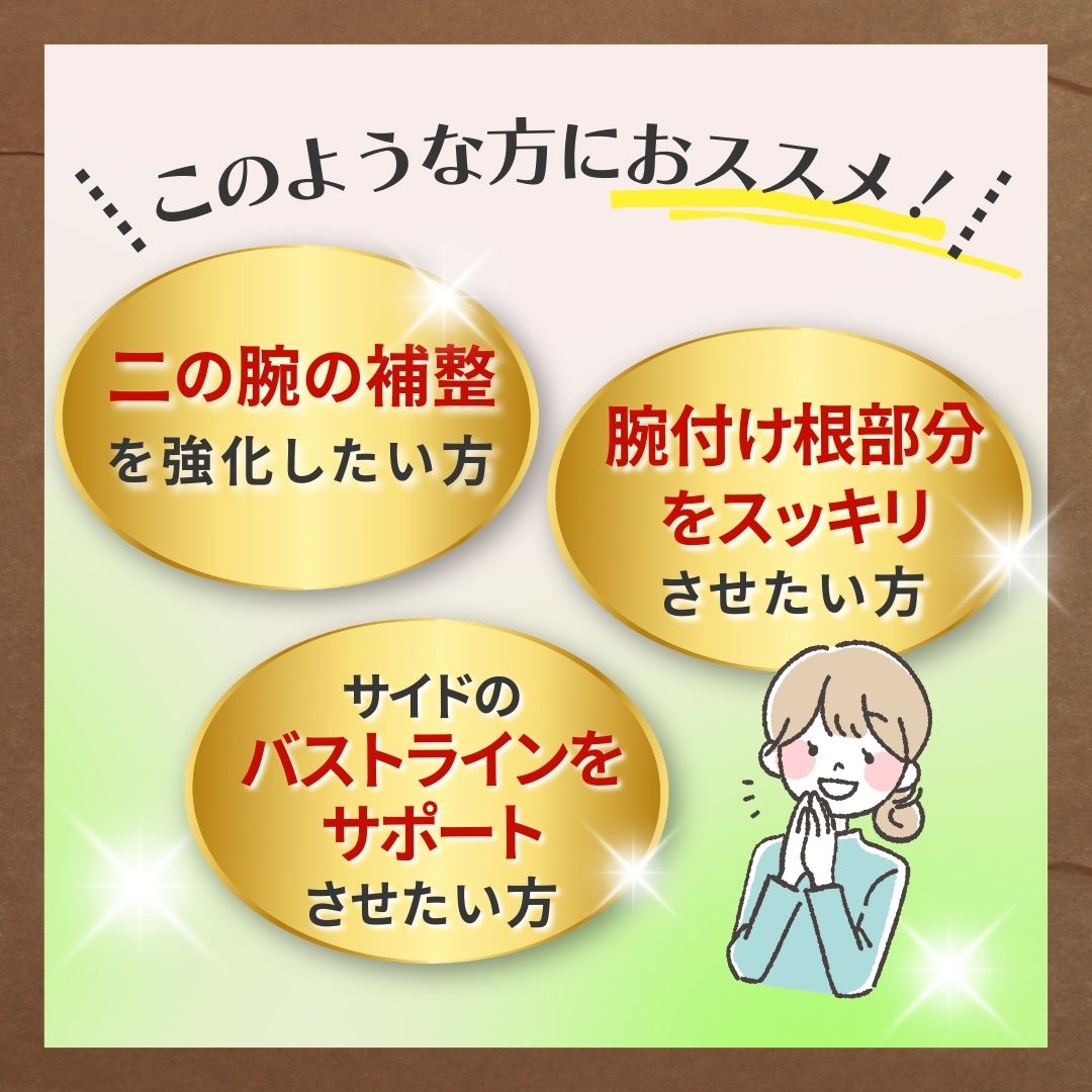 ボディスーツではカバーできない腕付け根部分の補整に。ややパワー感のあるリブ編みでバストへの入れ込みをサポート。