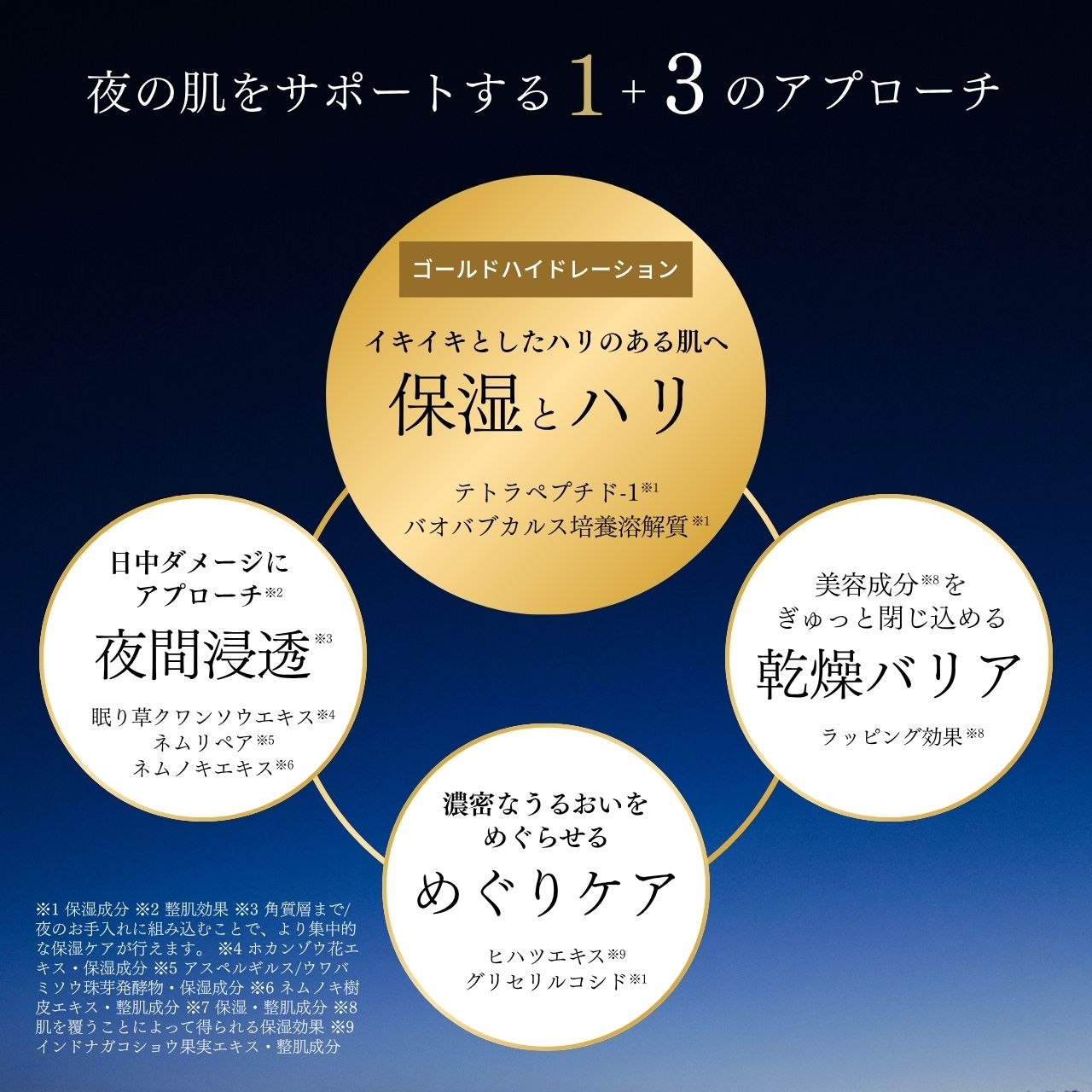 あらゆる輝きを閉じ込めた夜用クリームで、たっぷりと寝た後のようなイキイキとしたハリ肌へ。詳しくはこちら